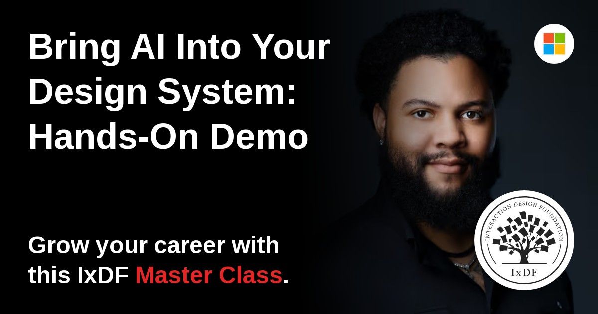 Get excited about this hands-on Master Class where you’ll master how to apply AI to real design system tasks. This session will be 1:30 h. You’ll learn where AI works and where it doesn't, practice structuring effective prompts, and understand how to evaluate and refine outputs to reduce manual work while maintaining quality and governance standards.