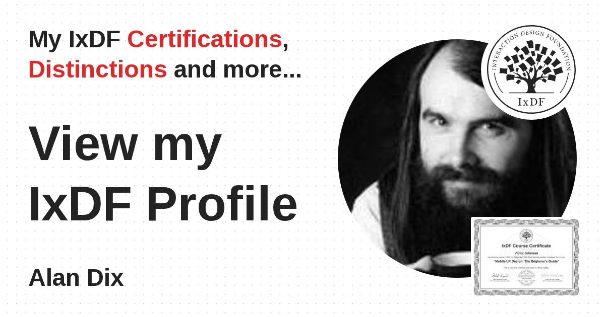 Distinctions are conferred upon Alan Dix in formal recognition of their notable achievements and contributions, as stipulated by the IxDF Educational Codex.