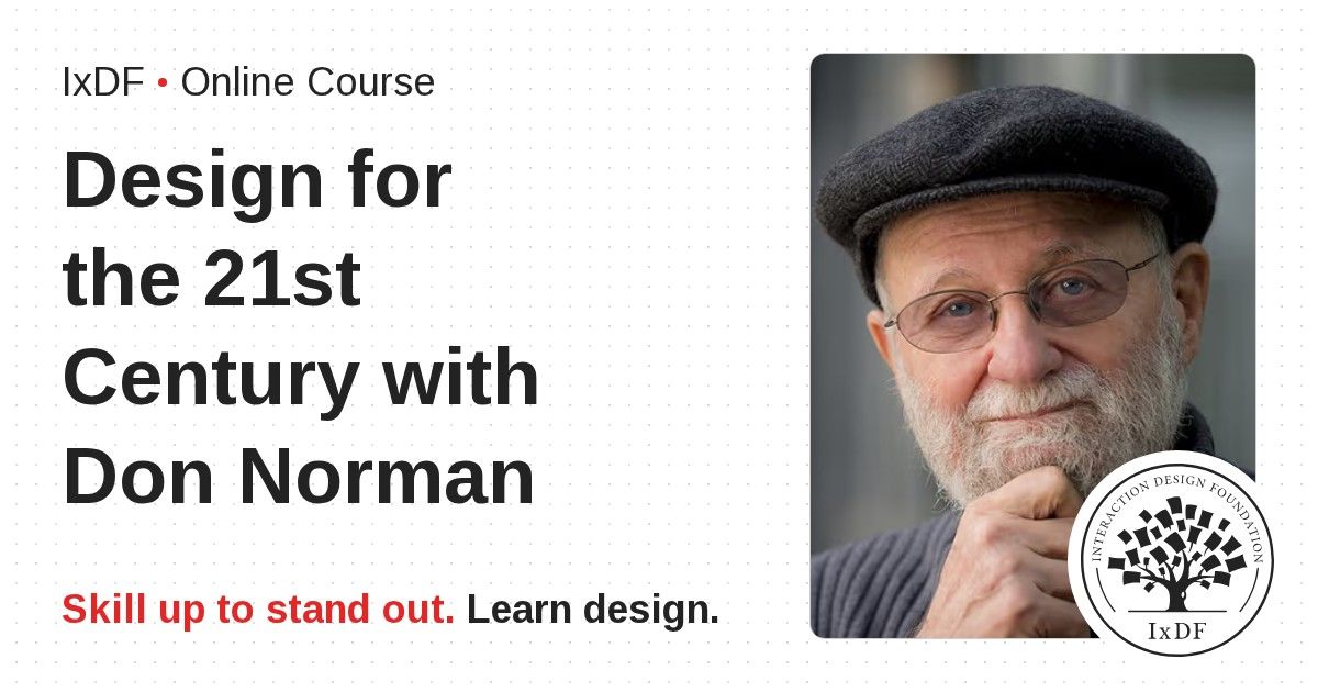 IxDF Course Certificate awarded to Devin Henkel-Legare for completing the "Design for the 21st Century with Don Norman" course