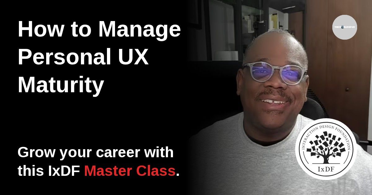 In this Master Class, veteran UX designer Darren Hood will explore the concept of personal UX maturity, review strategies to help optimize your personal development and trajectory in UX, and drive an understanding of why personal UX maturity is critical to the discipline-at-large.