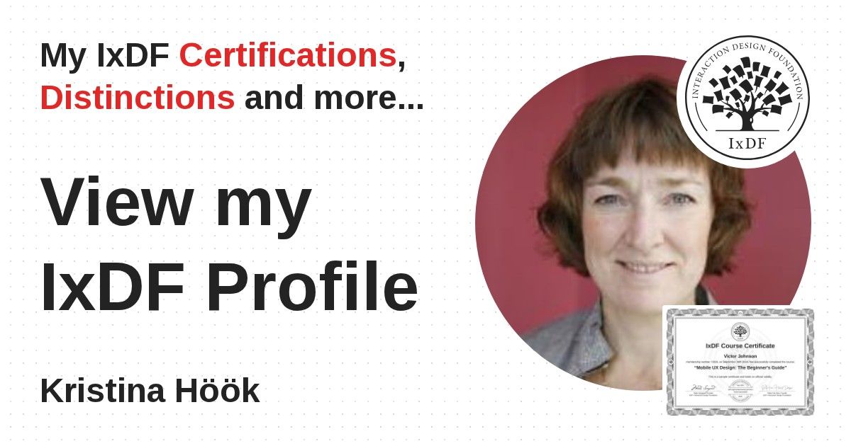 Distinctions are conferred upon Kristina Höök in formal recognition of their notable achievements and contributions, as stipulated by the IxDF Educational Codex.