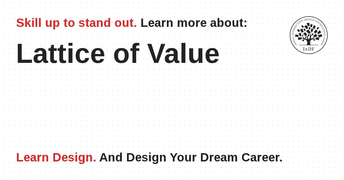 A lattice of value is created when different user groups derive benefits from other user groups using a product. Designers that can create a lattice of value within their product can encourage adoption by different groups of users. The lattice of value can also act as defense of a product when a new product comes to market – it not only needs to offer more value than the existing product but also more value than the existing lattice of value.