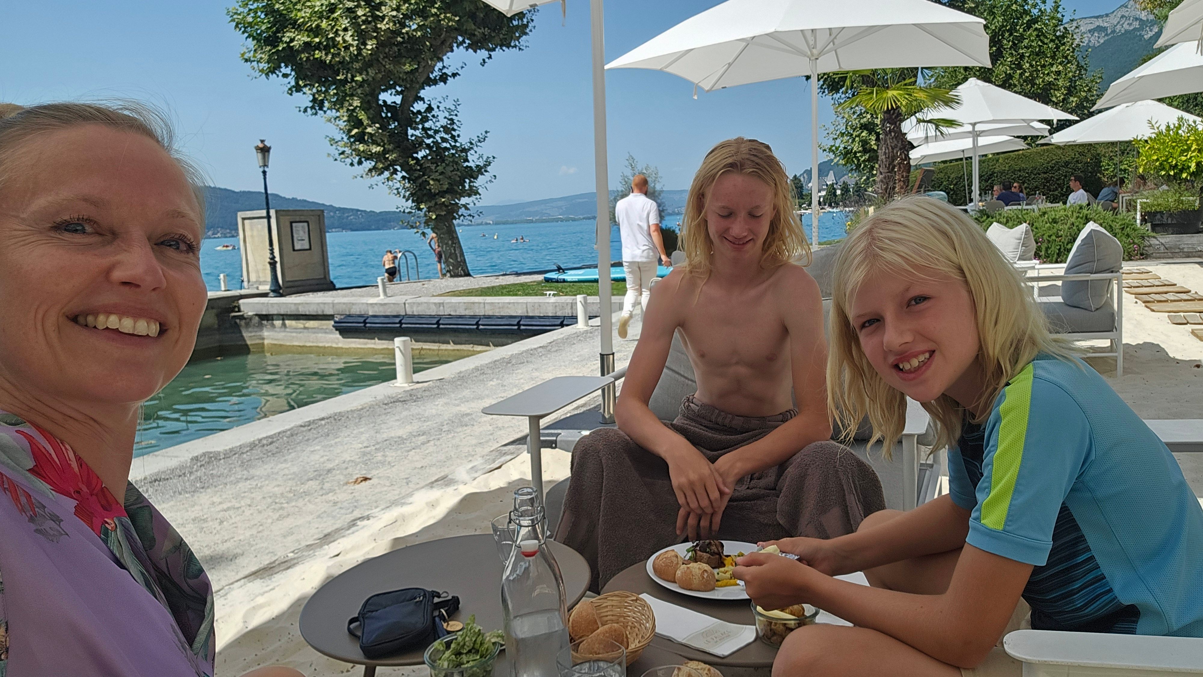 Check out the great fishing location behind us. When we travel, we ONLY live by lakes, rivers, and the ocean so our sons can fish as soon as they’ve done their daily reading, writing, AI, and math.