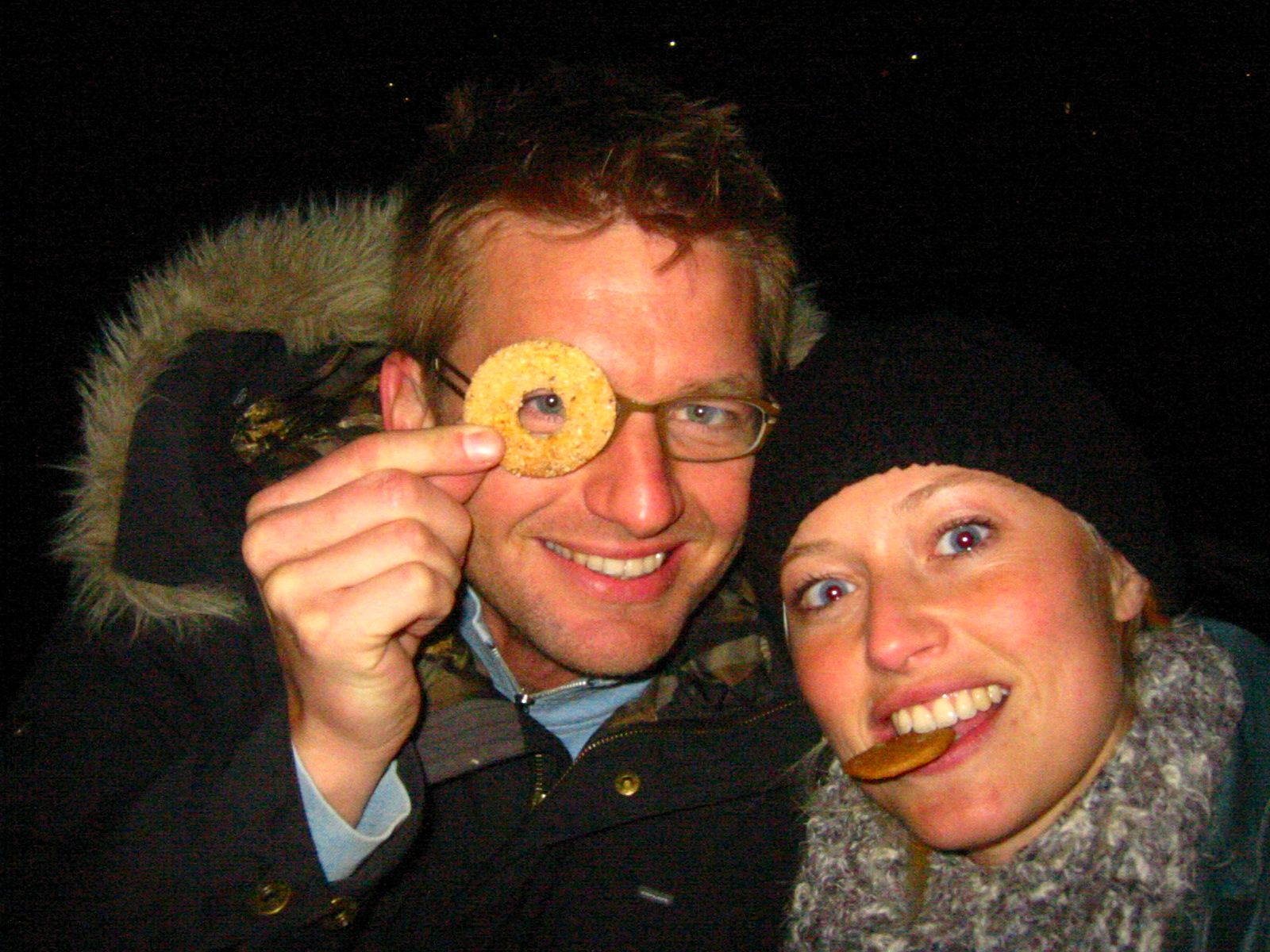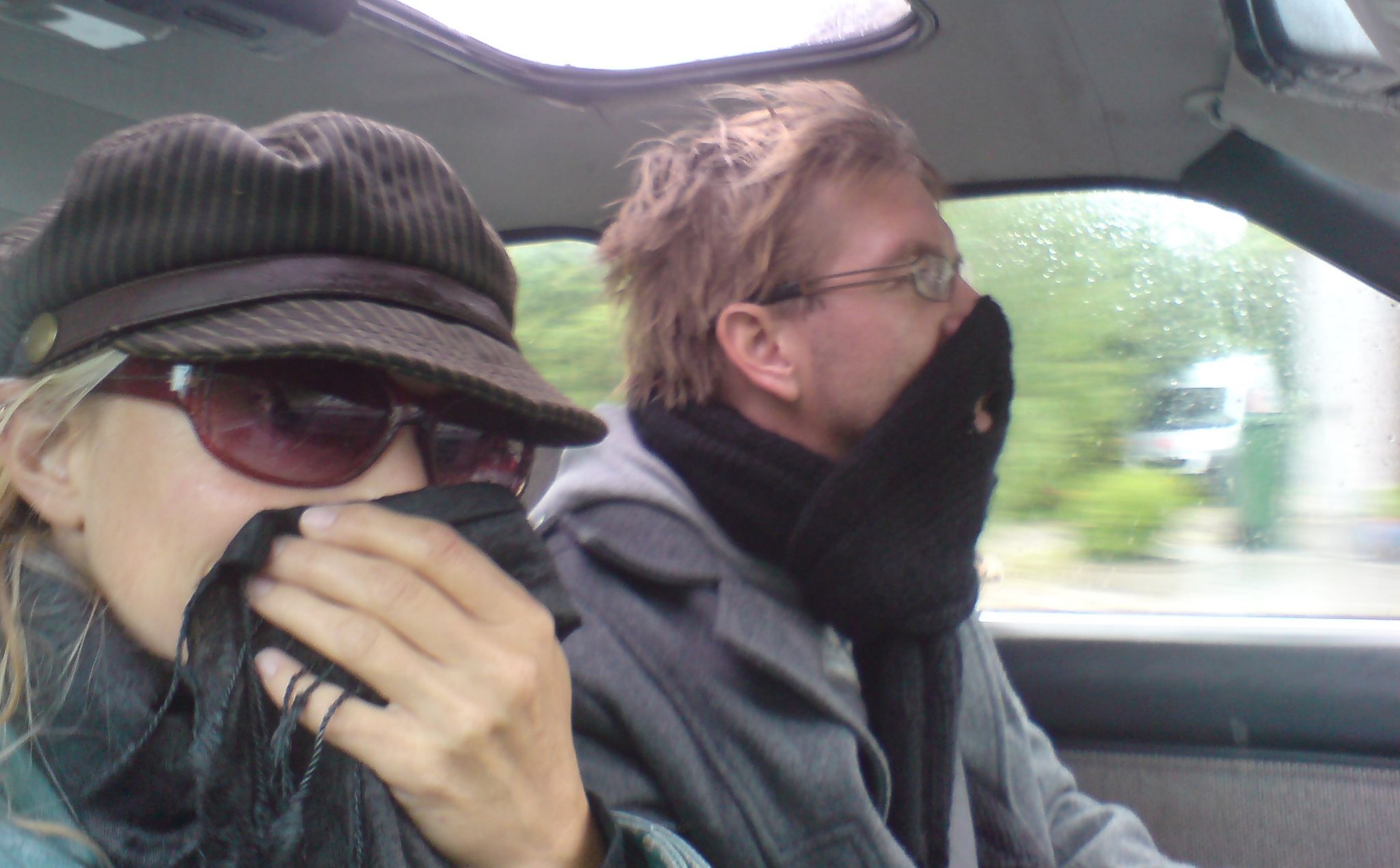 Mads’s sister saw our deep despair and gifted us an old rust bucket of a car, a 1985 Toyota Carina. But… we couldn’t afford repairs, so in the picture above you see us driving without a windshield and eating insects at 80 km/h.