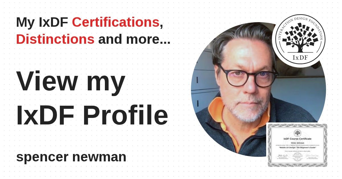 IxDF Course Certificates are awarded to spencer newman in formal recognition of their coursework surpassing the rigorous benchmarks of exceptional performance established by the IxDF Educational Codex.