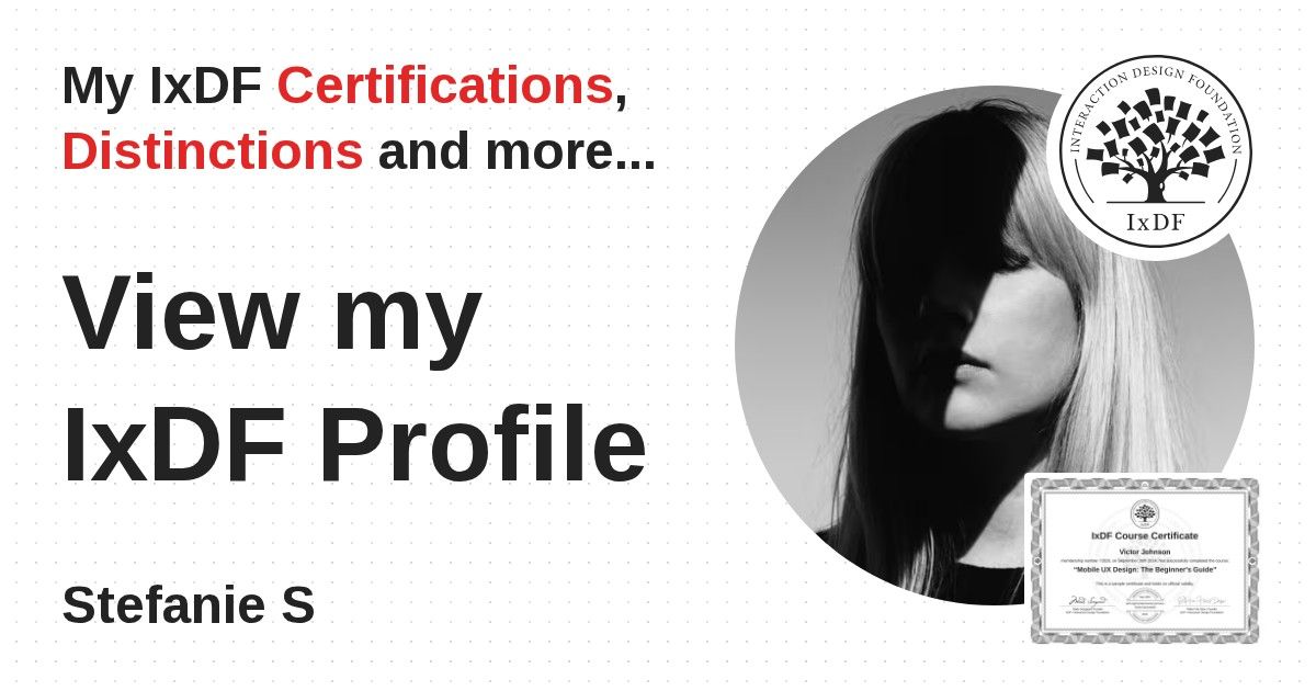 Distinctions are conferred upon Stefanie S in formal recognition of their notable achievements and contributions, as stipulated by the IxDF Educational Codex.