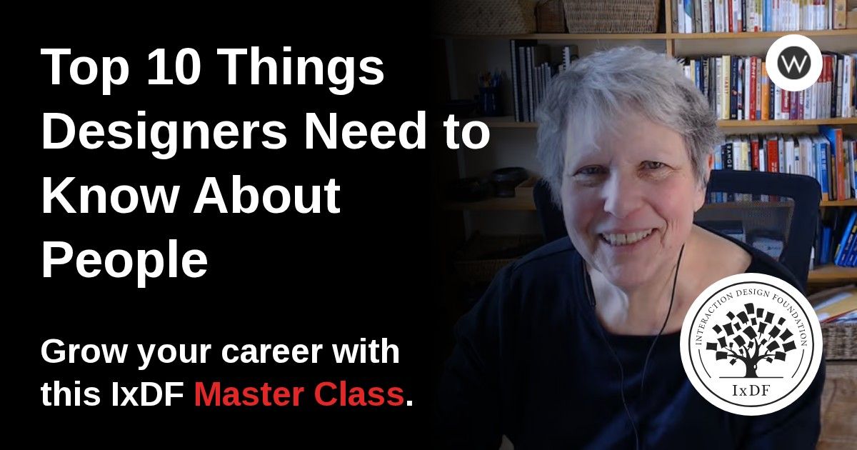Designers, especially UX designers, need to understand people–their users–to create successful designs. Behavioral Psychologist, Susan Weinschenk, shares the top 10 things you, designers, need to know about people. Taken from her book, 100 Things Every Designer Needs to Know About People, she extracts her 10 most essential tips for designers, including research on vision, mental processing, and what motivates people so that you’re better able to design products and services that work.