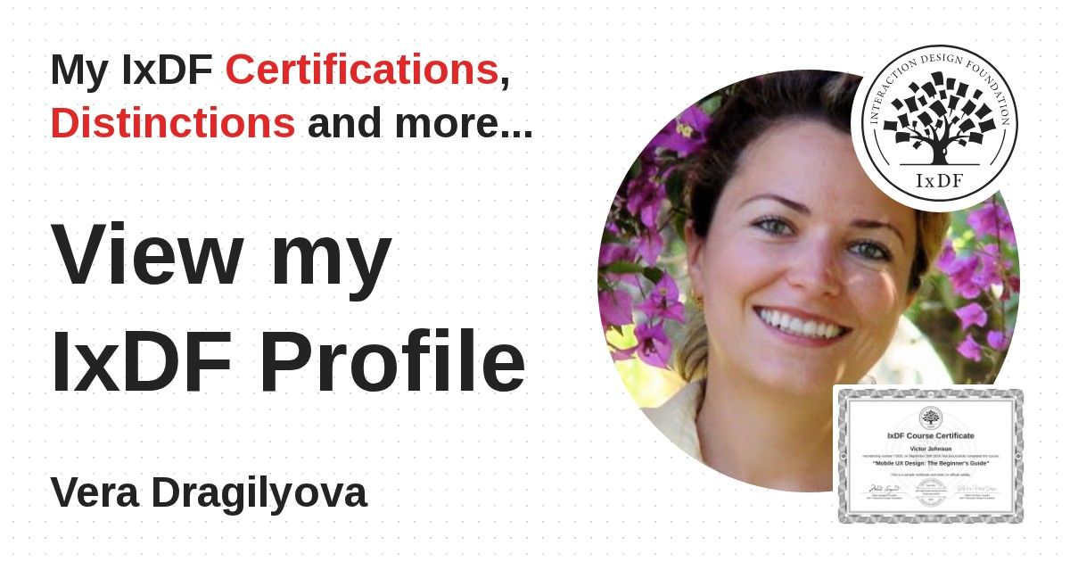 This IxDF Membership Certificate is issued to Vera Dragilyova